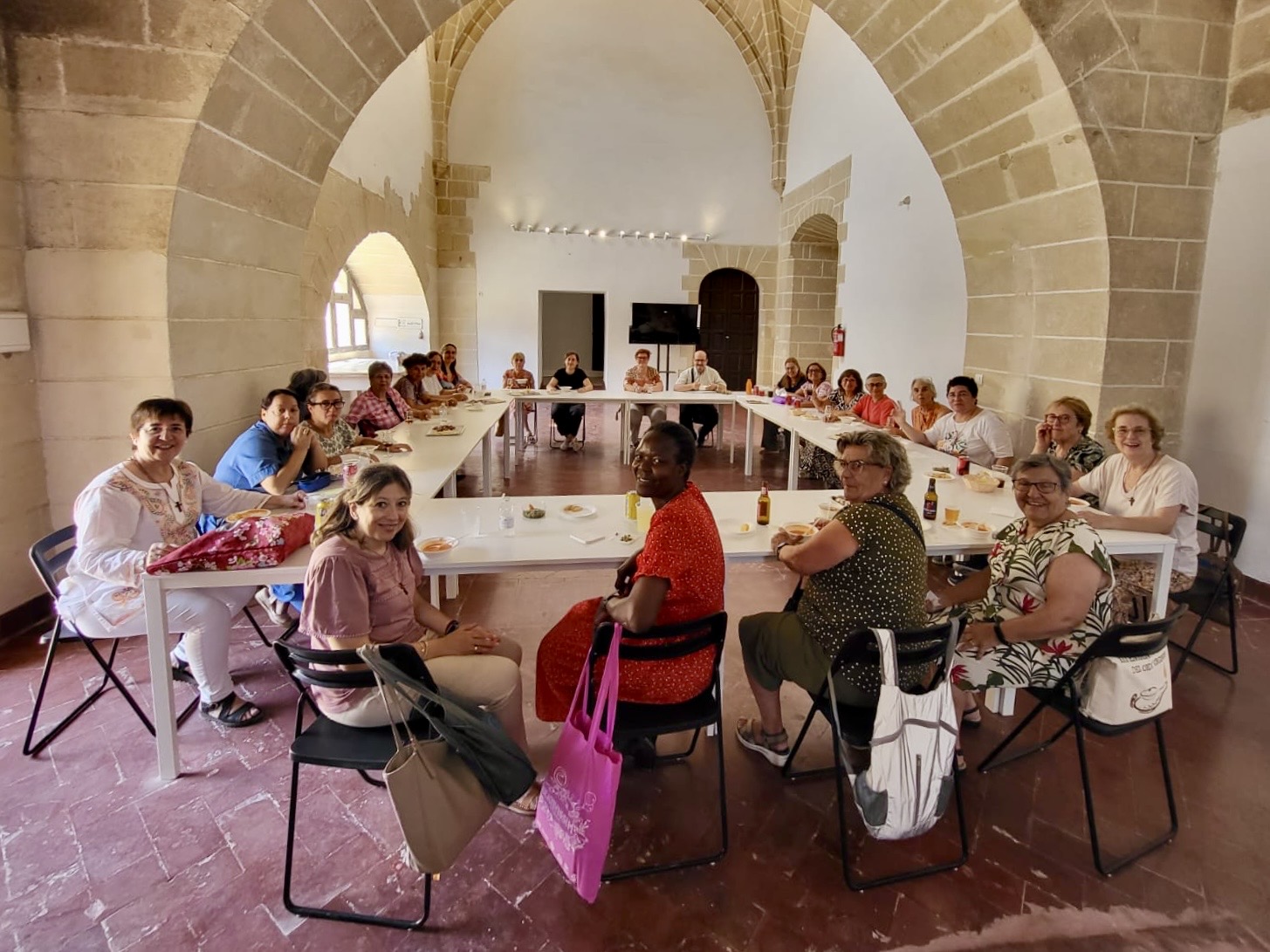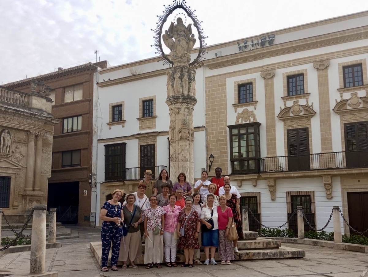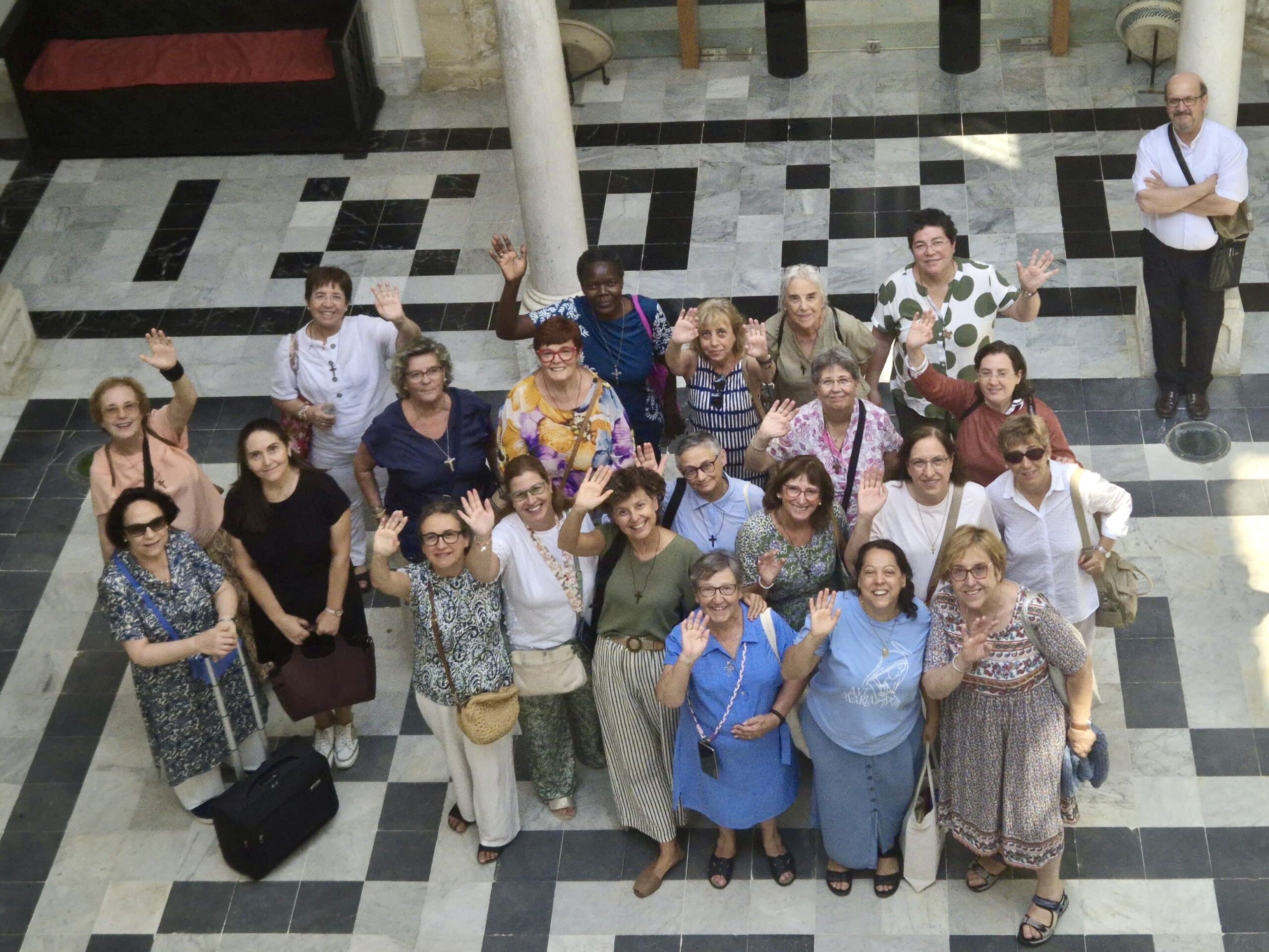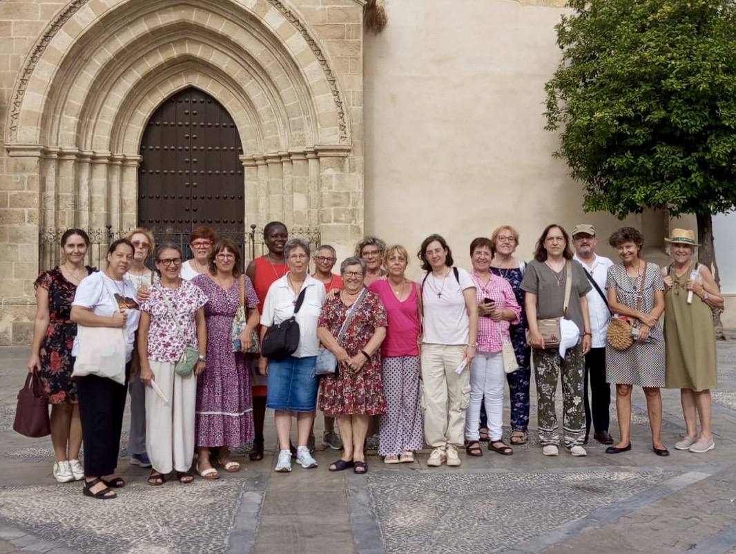 Durante los cuatro días de encuentro, formación y oración entre las hermanas, también pudimos disfrutar de Jerez: visita a la Cartuja y al Alcázar; celebración en la catedral con la renovación del propósito de virginidad; encuentros en monasterios e iglesias que nos acogieron para rezar juntas; visita al obispado, donde pudimos pasar bajo el manto de la Virgen de Guadalupe; una alabanza carismática; visita a las bodegas de Jerez… y la inagotable presencia de Paco, un laico casado que nos acompañó explicándonos cada detalle de Jerez. Todo hizo que nuestro encuentro de 2025 haya sido inolvidable.